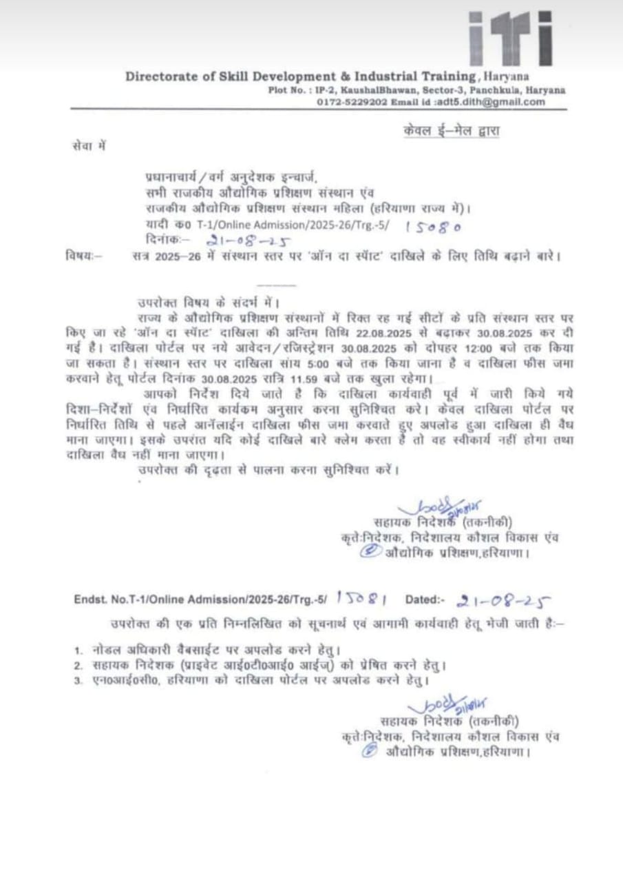 About Post : The Skill Development & Industrial Training Department, Haryana, is set to invite online applications for Haryana ITI Admission 2025-26, offering diploma courses in various technical and non-technical trades for the academic year 2025-26. With 166 government and 242 private Industrial Training Institutes (ITIs) in Haryana, this admission process targets students seeking skill-based training in trades like Electrician, Fitter, Draughtsman, and more. This guide provides essential details—application steps, important dates, eligibility criteria, selection process, and course details—to ensure a smooth application for Haryana ITI Admission 2025-26.