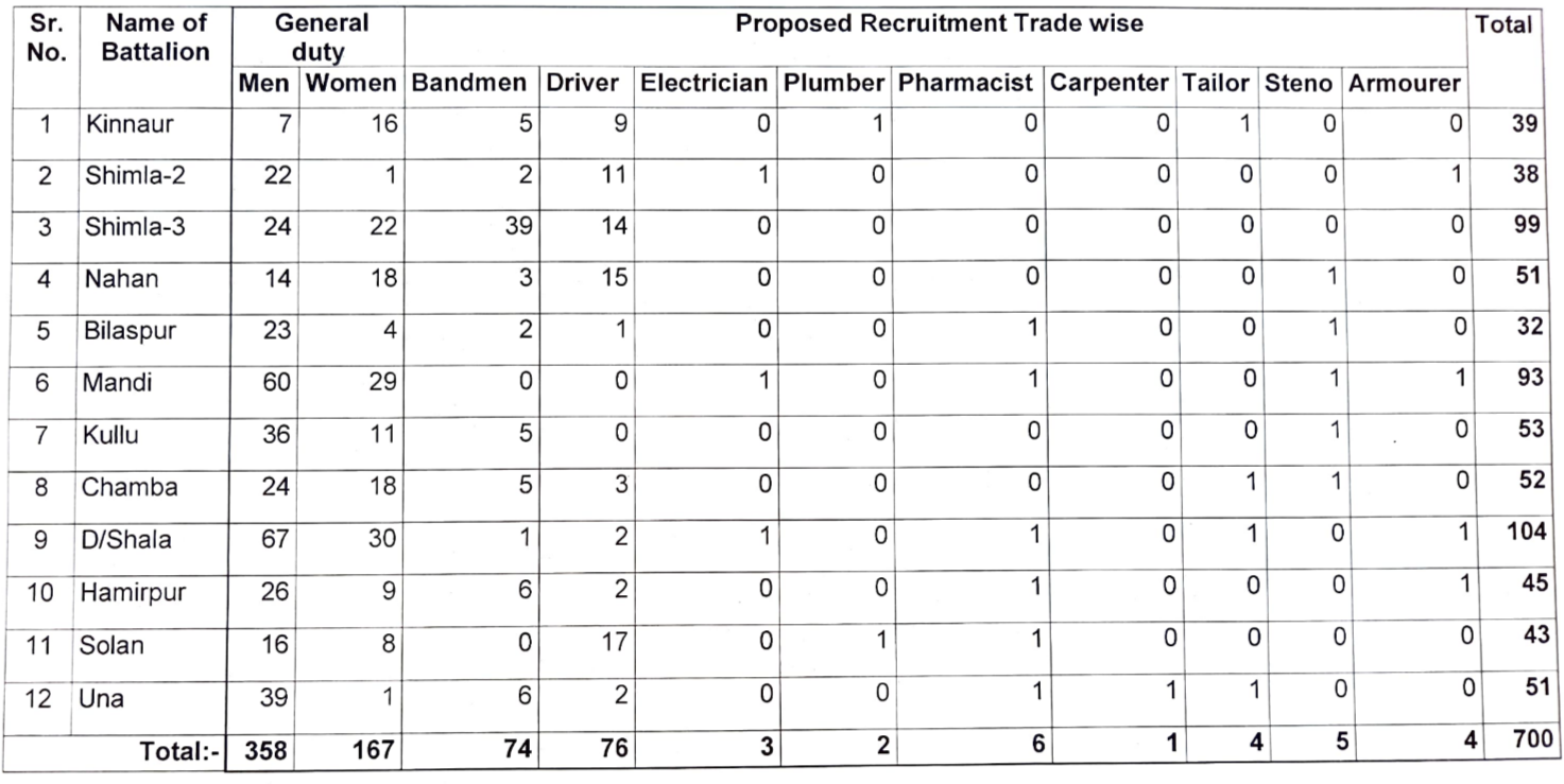 Trade / Battalion Wise Vacancies