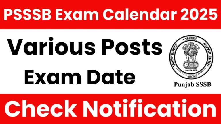 About Post : The Punjab Subordinate Services Selection Board (PSSSB) has released a revised schedule of written examinations for various posts under multiple advertisements. As per the latest corrigendum dated 01 August 2025, the exams are scheduled to be conducted on 3rd, 10th, and 11th August 2025 for Group B and C posts under several departments including Labour, Fisheries, Civil Aviation, and Cultural Affairs.Candidates appearing for the exams must check their respective exam dates, shifts, and advertisement numbers carefully and download their admit cards in due course from the official PSSSB website – sssb.punjab.gov.in.